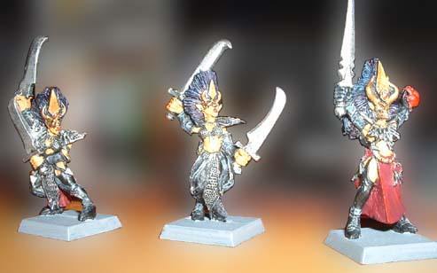 'Classic' Dark Elf Witches. Models by Games Workshop. Painted 2001.